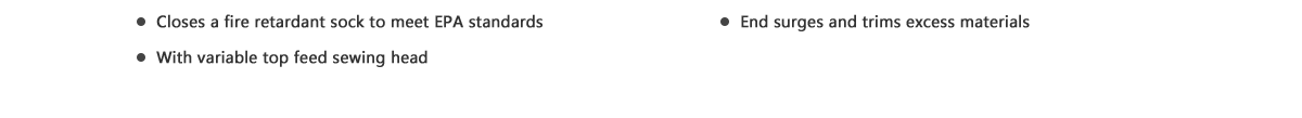 This machine is used for closing fire retardant socks.